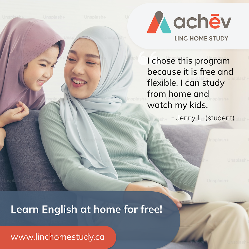 I created this instagram post which would serves as an ad and a call-to-action for Achev's LINC Home Study program. A student testimonial copy was provided as a brief. The choice of using a diverse people for the stock image was because the LINC home study program targets new immigrants/ is popular among newcomers to Canada who are looking to learn English online.