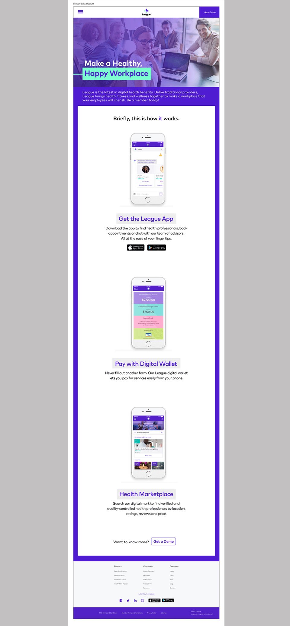 In 2016, I was interviewing for a Visual design job and this was my effort to redesign League Inc.'s members web page as part of a creative brief. I've showcased a responsive layout for S,M,L screen types relating to various device usage.