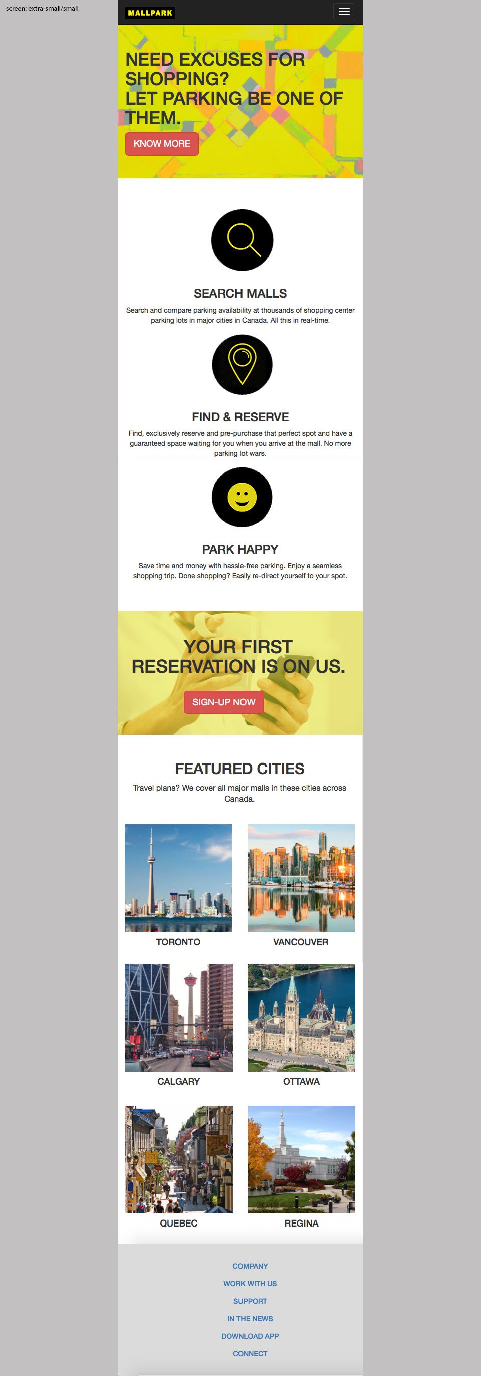 Mallpark Home Page – Mobile Device, Extra-Small & Small Screens.